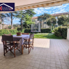 Ampia zona coperta pavimentata esterna (circa 50mq) dotata di tende automatiche, giardino privato (76mq) con impianto di irrigazione e accesso diretto su grande giardino condominiale.