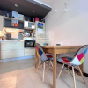 Entrando in casa troviamo una bella zona giorno open space, divisa in area soggiorno ed area pranzo con cucina a vista. Interessante la scelta dei colori delle pareti e dei faretti incassati nel soffitto che rendono molto moderni gli ambienti. Proseguendo troviamo un disimpegno - con una comoda e spaziosa armadiatura - che ci conduce alla camera da letto matrimoniale ed al bagno con doccia.