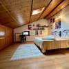 Una comoda scala in legno ci conduce al primo piano dove troviamo un ampio soggiorno e due camere matrimoniali, il tutto rifinito con tetto in legno a vista e parquet.