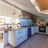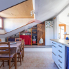 Entrando dalla porta di ingresso troviamo subito un disimpegno organizzato come guardaroba, attaccapanni di un altezza di circa 3mt. Attraverso una scala a chiocciola si accede poi al resto della casa, dove troviamo una tipica mansarda.