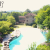 Questultima si trova di fronte alla casa ed è tematizzata con rocce a sfioro, scivolo acquatico che scende dal terreno in pendenza per circa 60 m. con piscinetta intermedia per rallentare la corsa e zona solarium che continua nel giardino curatissimo e con oltre 7000 rose. Impianto di irrigazione su tutto il terreno, tramite la sorgente di proprietà. Sulla sommità della collina che circonda la proprietà campo da tennis/calcetto.