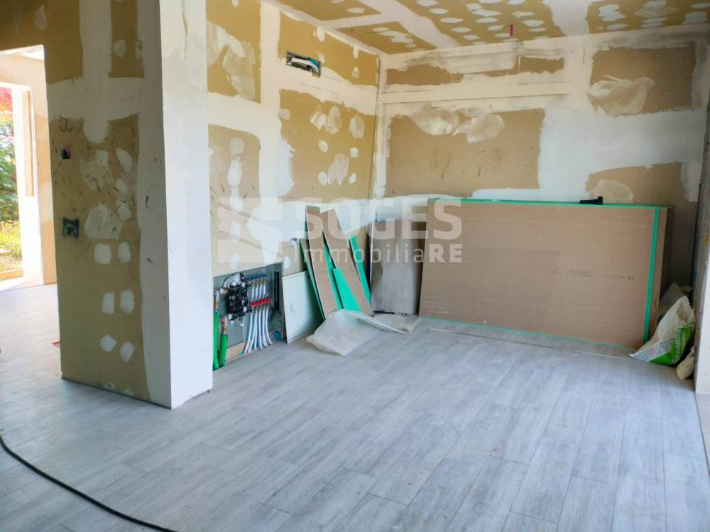 Sant'Ellero, in complesso di villette di nuova costruzione in classe A, appartamento con giardino di 40 mq, disposto al piano rialzato e dotato di taverna al piano terra, per una metratura complessiva di 100 mq, oltre garage di 25 mq posto lateralmente alla taverna, pertanto utilizzabile anche come prolungamento della taverna stessa. Dotato di ingresso indipendente, si compone al piano terreno rialzato di zona giorno open-space con cucina a vista, disimpegno, camera matrimoniale, bagno, terrazzo di 10 mq e giardino di 40 mq; al piano inferiore è dotato di taverna con porta finestra verso l'esterno (pertanto ben utilizzabile sia come seconda camera che come zona giorno, ottenendo un'altra camera al piano superiore), ulteriore bagno e garage. L'appartamento è attualmente in stato di ultimazione lavori (come visibile da foto). Realizzato con elevati standard di fabbricazione ed efficientamento energetico come cappotto isolante, pannelli solari, pannelli fotovoltaici, caldaia a pompa di calore, riscaldamento a pavimento. L'appartamento sarà inoltre dotato di predisposizione per climatizzazione, ed ogni stanza, predisposta per il recupero del calore di scambio (VMC). Possibilità di personalizzazione delle rifiniture come da capitolato. Classe energetica A. - Rif. 47945 - Per Info e visite 055.19936720