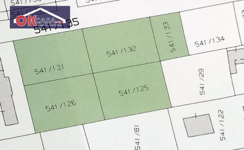 Le particelle che la compongono nella planimetria qui presente sono indicate come 541/125 (663mq) e 541/132(632mq) appartenenti al LOTTO 1 + 274mq adiacenti al parcheggio a sinistra contrassegnato sulla medesima planimetria con la particella 541/133.
