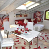 Al piano superiore mansardato troviamo un ampio soggiorno con cucina a vista, due camere da letto, un bagno ed un ripostiglio.
