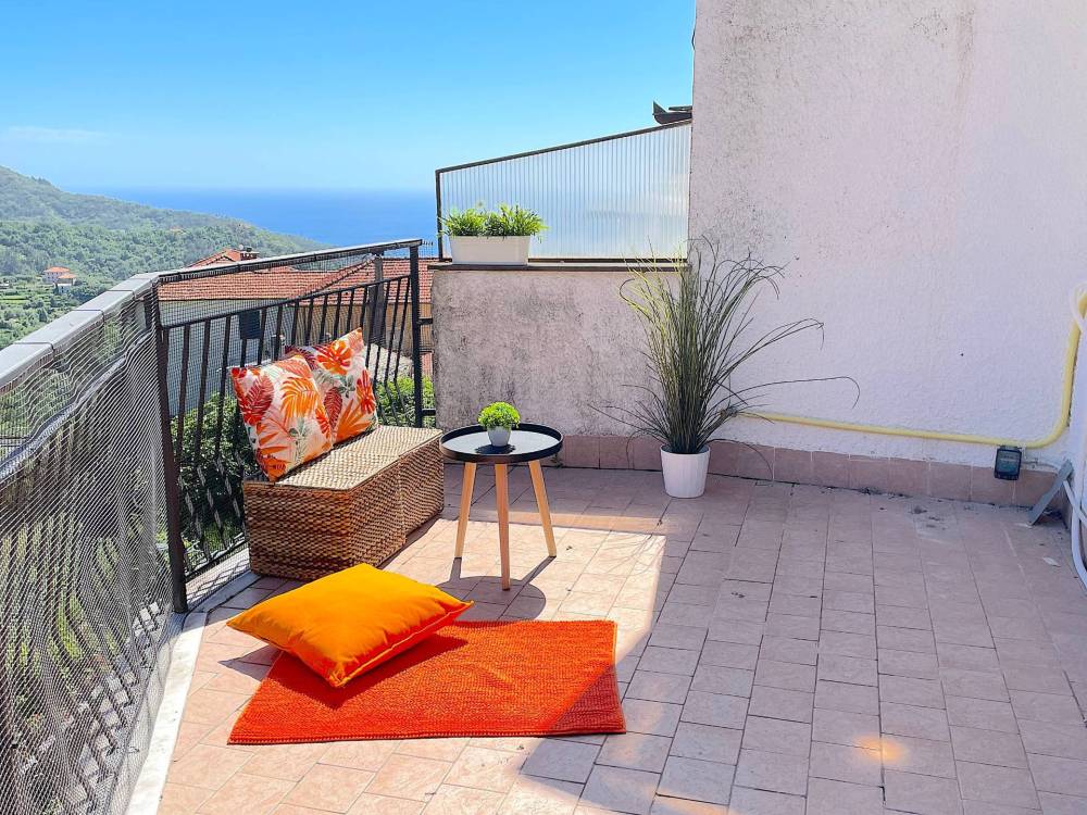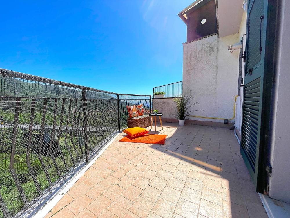 Un terrazzo di 10 mq al piano primo adiacente al soggiorno vi regalerà cene al chiaro di luna con scorcio vista mare, un balcone di 4 mq al piano secondo adiacente alla camera matrimoniale per godervi ogni momento di relax con vista sulle verdi colline circostanti.