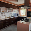 Von der einladenden Veranda mit Panoramablick betreten Sie die Wohnung im Hochparterre, die einen großen Wohnbereich beherbergt, der aus einem Wohnzimmer mit Küchenzeile und einem modernen Kamin besteht.