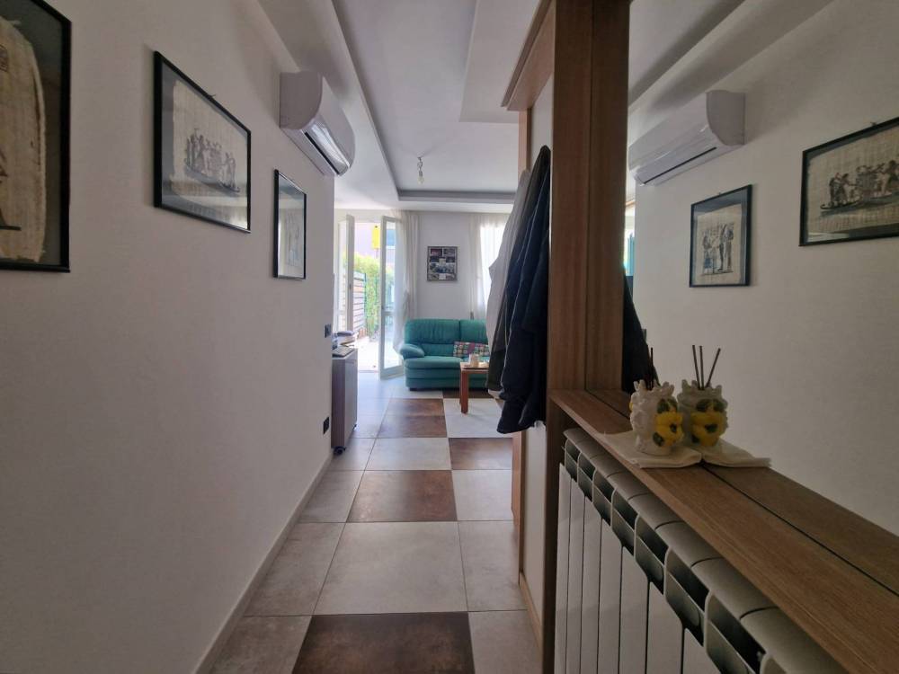 L'immobile è pronto pronto per essere abitato senza alcun lavoro di ristrutturazione. Situato al piano giardino, questo appartamento di una superficie di 90 mq commerciali, è composto da: ingresso, soggiorno con cucina a vista, disimpegno, due camere da letto, doppi servizi. Ogni locale dà accesso al giardino privato, dove è stata realizzata una spaziosa veranda con cucina estiva, per godere di piacevoli momenti all'aperto. L'appartamento è dotato di tutti i comfort e gli spazi sono ben organizzati per garantire il massimo della funzionalità.