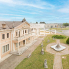 L'edificio è decorato da colonne e sovrastanti statue realizzate in pietra, mentre il giardino della fontana ed 5 statue e 3 panchine anch'esse in pietra.