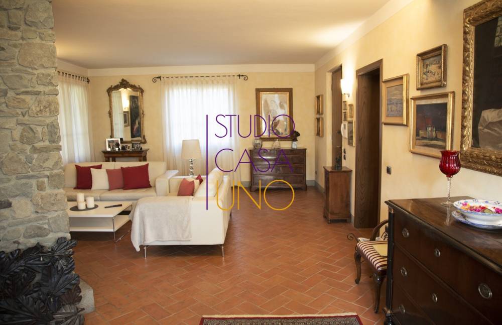Montevarchi - Prima periferia - StudioCasaUno propone in vendita questa splendida villa unifamiliare , a pochi minuti dal Centro di Montevarchi. Immersa nella natura in posizione panoramica, il giardino è completamente recintato attrezzato per cene all'aperto, dove è stata realizzare una bella piscina. Alla proprietà si accede da cancello automatizzato, questa meravigliosa abitazione sorge su di una collina, si sviluppa su tre piani. Al piano terra troviamo una bella zona living open space con caminetto e accesso su ampio loggiato che affaccia sul giardino, cucina abitabile, un bagno e lavanderia. Dalla zona living saliamo al piano primo attraverso una scala, molto particolare dove ampie finestre fanno da cornice sul bellissimo panorama, un bel disimpegno ci conduce alla camera padronale con bagno privato e accessoriata da loggiato, allo stesso piano si trovano due camere e bagno. Dal disimpegno collegato da scala si accede alla zona sotto tetto dove attualmente si trova la quarta camera/studio con terrazza panoramica. Scendendo al piano seminterrato troviamo una taverna con seconda cucina e un bagno e la lavanderia/cantina, dallo stesso piano seminterrato ci si accede alla dependance che si sviluppa su due livelli. Frutto di un elaborato progetto architettonico, questa villa presenta spazi ben distribuiti, materiali ricercati e finiture di prestigio, impianto a Gpl, impianto d'allarme, zanzariere, impianto d'irrigazione con pozzo privato.La proprietà è ideale per chi ama vivere un ambiente elegante ed accogliente, circondato dalla natura, a pochi minuti dal centro della città.