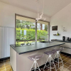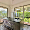Sempre al piano terra chiude la zona living un'ampia e moderna cucina dotata di tutti gli elettrodomestici di ultima generazione, completa il piano lo spazio notte composto due camere da letto, di cui una con soppalco e ripostiglio, entrambi le camere hanno il bagno en suite. Il piano giardino, basement, ha un accesso indipendente oltre che essere collegato da scala interna, attualmente è organizzato in due appartamenti indipendenti composti ognuno da soggiorno, cucina, due camere letto e un totale di tre bagni oltre alla doppia lavanderia e una zona adibita ad armadi.