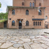 La facciata esterna, in laterizio e arricchita da arcate in stile medievale, si integra perfettamente con il contesto architettonico della Rocca Pallavicino, uno degli edifici più emblematici della città.