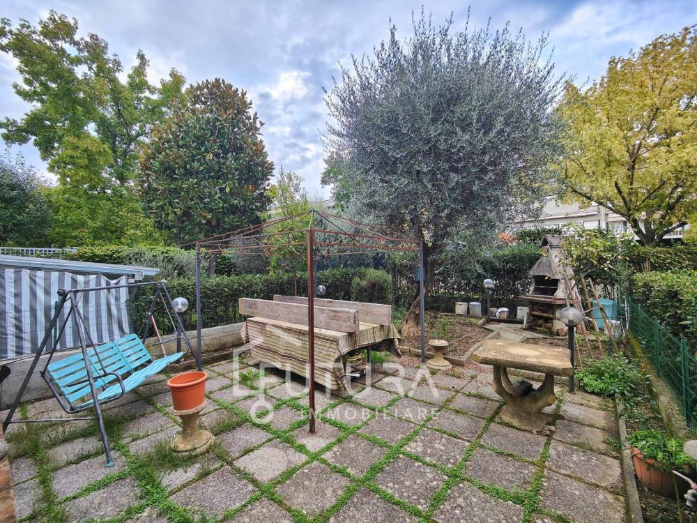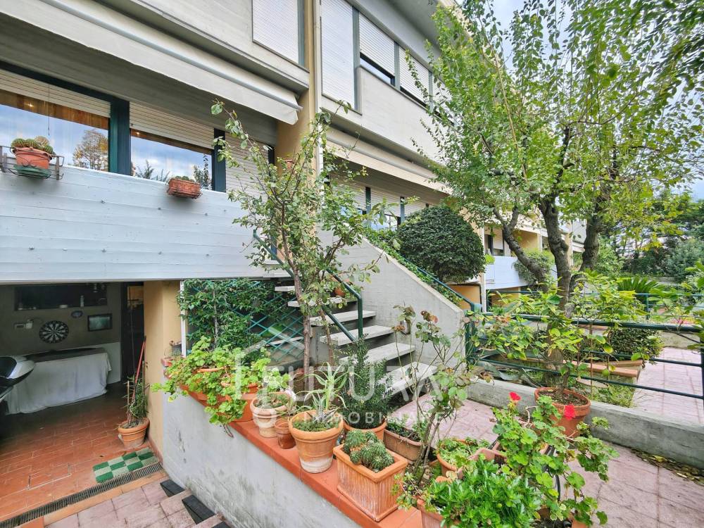Collocato in una strada senza sfondo in piacevole contesto residenziale, proponiamo villetta a schiera composta da ingresso al piano terra, con taverna comunicante con il giardino tergale, piano primo con altro accesso tramite scale, dove trova sistemazione la zona giorno divisa tra cucina/tinello e soggiorno, a sua volta collegato tramite scala esterna al giardino. Al livello superiore la zona notte composta da 4 camere e doppi servizi, oltre accesso alla soffitta impreziosita da un caratteristico terrazzo a tasca con piacevoli affacci nel verde.