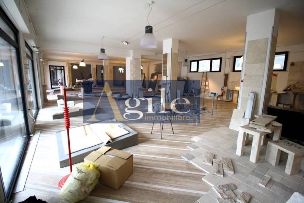 L'unità delle dimensioni di 330,00 mq con esposizione SUD/NORD, posto al piano terra di una palazzina con un'ottima visibilità su strada tramite 6 ampie vetrine, con una buona disponibilità di parcheggi pubblici antistanti, è composto da un unico locale adibito a negozio espositivo, bagno finestrato di servizio e allacci per la realizzazione di altri due;