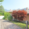 Al piano terreno secondo ingresso con accesso alle autorimesse, ampia camera da letto con bagno, studio, secondo ampio soggiorno con camino ed accesso al giardino, seconda cucina con forno a legna, ulteriore bagno, lavanderia/stirerei, centrale termica ampia autorimessa tripla in larghezza di mq 50.
