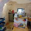 L'abitazione è composta da un ampio e luminoso living, da cui si accede alla spaziosissima camera da letto e al bagno con vasca e doccia. Il tutto è collegato, tramite un suggestivo passaggio, al trullo che ospita una comoda cucina abitabile. La pietra e l'intera struttura del trullo sono state oggetto di una sapiente ristrutturazione, che ha portato alla loro massima bellezza anche le due alcove laterali.