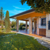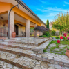 Allesterno, la villa si distingue per le tonalità calde della facciata, con elementi in pietra che richiamano lo stile tradizionale della zona.