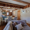 All'immobile si accede direttamente alla zona giorno, qui troviamo un grande angolo cottura con penisola affacciato sull'accogliente soggiorno e la sala da pranzo. Qui troviamo un caldo angolo living con caminetto a legna ventilato, ideale per rendere ancora più accogliente i vostri momenti.