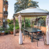 L'immobile gode di una eccellente esposizione ed è inserito in un piccolo stabile di sole tre unità abitative. Gli spazi interni ben distribuiti presentano la maggior parte della metratura al piano terra dove trovano luogo un ampio soggiorno, una cucina semi abitabile, due camere da letto di cui una patronale ed un servizio ristrutturato di recente; dagli ambienti principali della casa si ha accesso al grande giardino pavimentato che la circonda ed all'interno del quale è possibile installare pergotende o gazebi per goderne nei momenti di relax. Il piano inferiore dispone di una ampia sala hobby finestrata in buona parte fuori terra, con camino funzionante e predisposizione per un angolo cottura ed un servizio con finestra; Il piano fruisce di un ingresso indipendente dalla rampa in proprietà esclusiva, questa caratteristica consente la coabitazione di poter utilizzare l'immobile in materia versatile ad esempio per la locazione parziale, la coabitazione di due nuclei famigliari o semplicemente l'indipendenza di un figlio. La proprietà è completata con un box auto di ampia metratura capace di ospitare due auto. Tra gli accessori sono presenti porta blindata, infissi in legno con vetrocamera, un condizionatore nel soggiorno, impianto di riscaldamento autonomo, grate antiscasso e tende da sole.