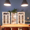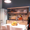 Suddivisione in due appartamenti indipendenti, ciascuno con la propria cucina e ingresso condiviso.