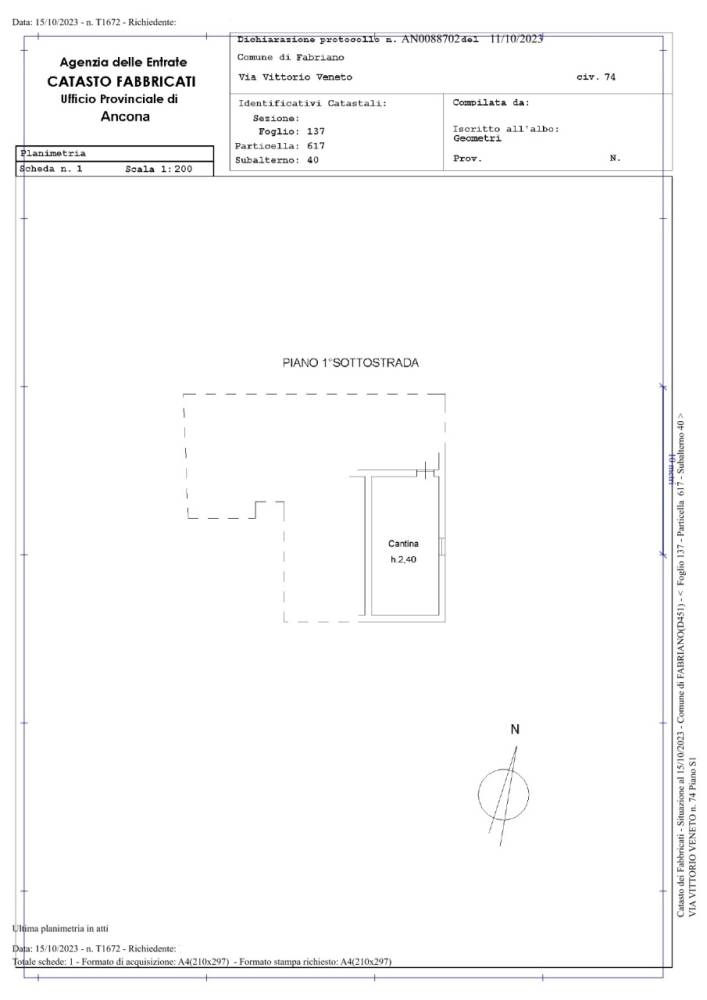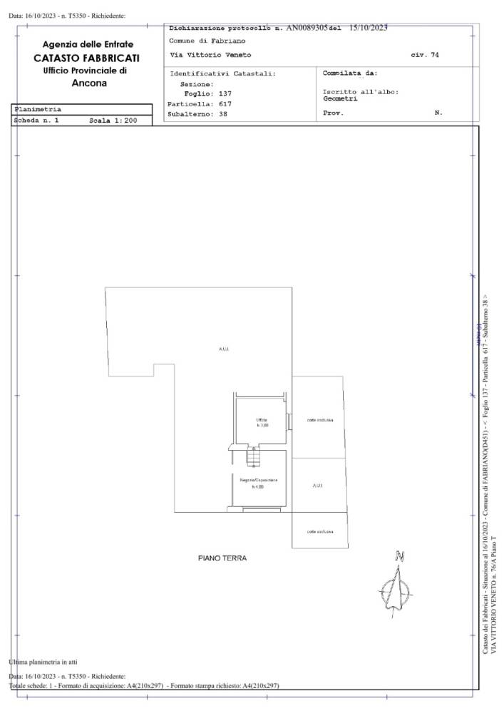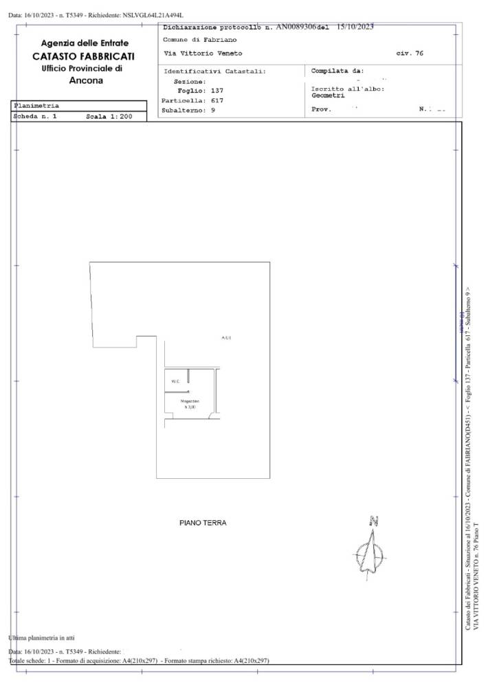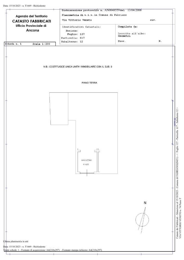 FABRIANO (AN) – LOCALE COMMERCIALE ideale anche per UFFICIO, con annessi deposito, cantina e posto auto scoperto. E' sito nel centro cittadino in zona residenziale ben servita da negozi e stazione ferroviaria. E' parte di più ampio condominio realizzato in muratura portante nei primi anni ’50. L'immobile è al piano terra ed ha una superficie di circa 48 mq suddivisi in due ambienti con altezza utile variabile da 3 a 4 metri. Attraverso una porta interna comunica con l’adiacente magazzino di circa 44 mq, anch’esso posto al piano terra con altezza interna di circa 3,80 m. Completano la proprietà una cantina di circa 39 mq con altezza interna di 2,40 m al piano seminterrato alla quale si accede dalla scala condominiale ed un posto auto esterno scoperto di circa 20 mq. Rif. 6733 DiLeoImmobiliare
