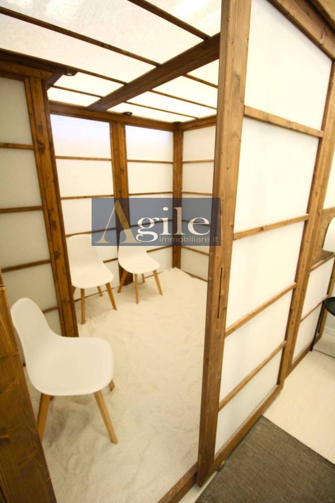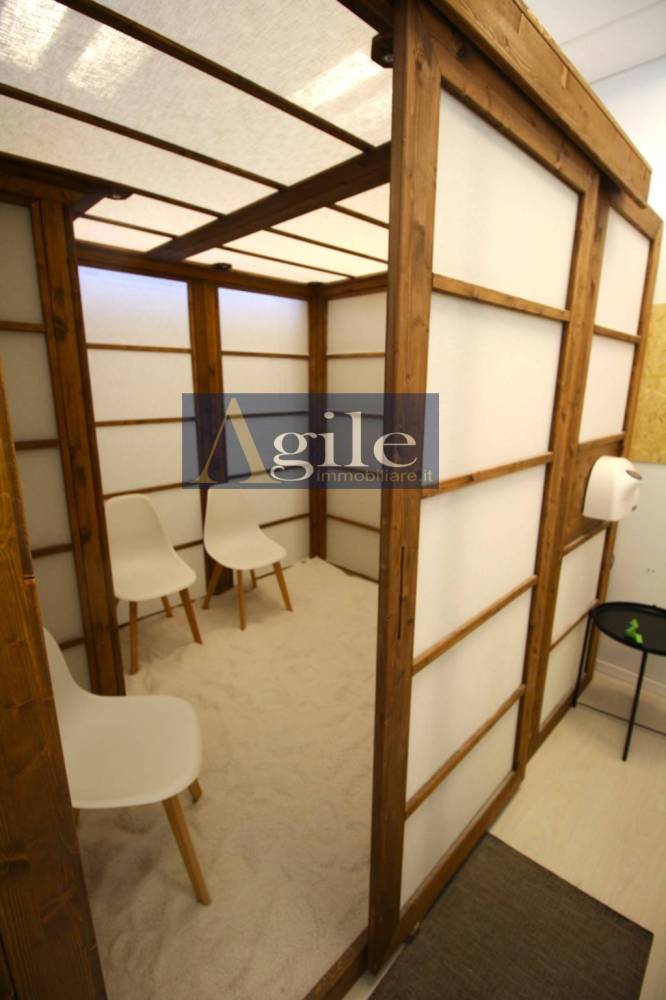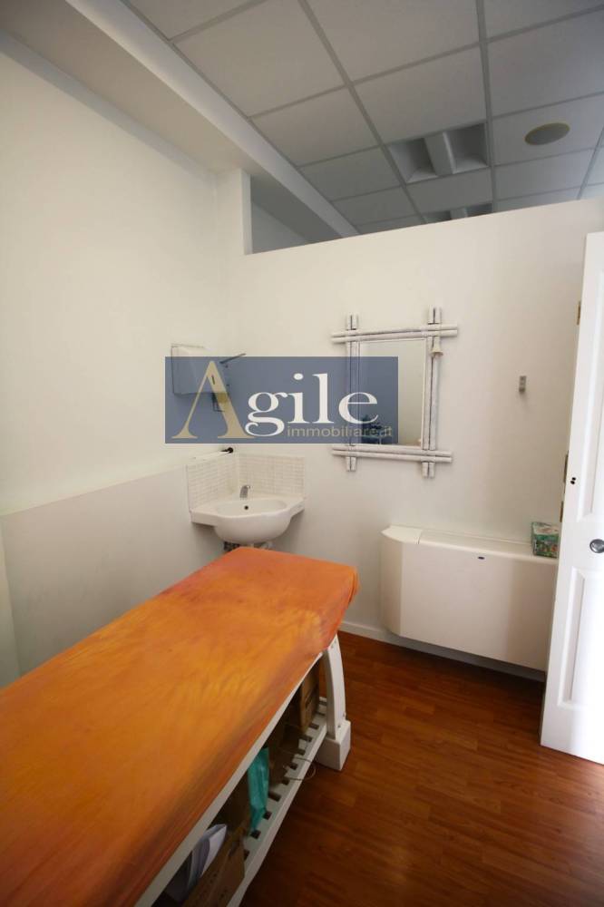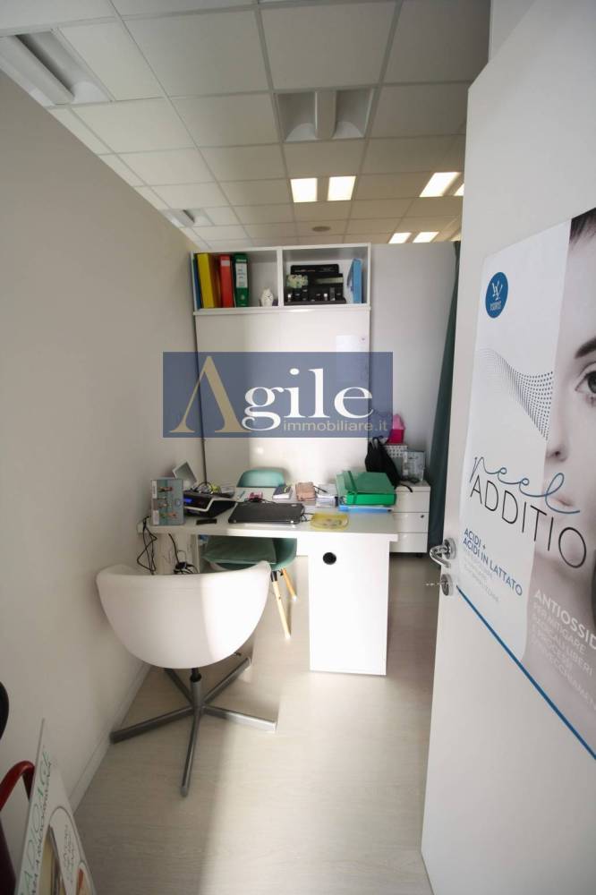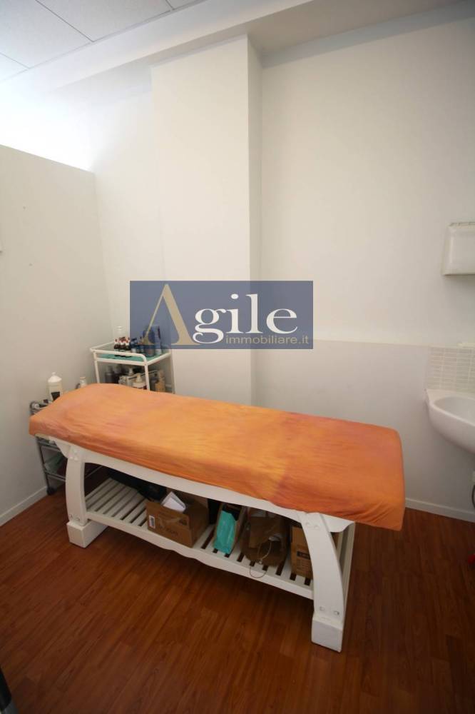 L'unità, attualmente destinata a centro estetico, si compone di diversi ambienti e wc di servizio attinenti all'attività in esso esercitata e si presenta in ottimo stato di conservazione, con pavimentazione in laminato in legno di tipo galleggiante, infissi interni in legno laccato, esterni in alluminio e vetri, divisori interni in cartongesso, impianto di riscaldamento autonomo con pompa di calore e termoconvettori caldo/freddo.