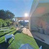 =>Nel giardino a piano terra è presente una piscina 4 x 8 mt profonda 115 cm; il giardino è piastrellato per 125 mq al livello del piano terra, e per 46 mq (più 29 del loggiato coperto), al livello del seminterrato.