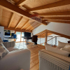 Dal soggiorno si accede all' ampio soppalco utilittato quale zona di svago e/o ufficio con servizi.