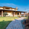 Immagina di varcare la soglia di casa sotto un ampio portico con travi a vista, che racconta subito il calore e lautenticità di questa splendida villa. Lingresso si apre su un soggiorno luminoso e arioso, dove le grandi finestre regalano una vista incantevole sul giardino, inondando gli ambienti di luce naturale e rendendoli subito accoglienti.