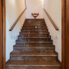 La cucina, elegante e funzionale, è separata da una porta vetrata decorata con disegni a piombo: una soluzione raffinata che unisce privacy e luminosità. Al piano terra trovi anche uno studio riservato, perfetto per chi lavora da casa o desidera uno spazio dedicato alla lettura, allo studio o alla propria creatività.
