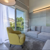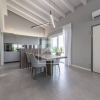 La zona living open accoglie il salotto e la cucina godibili anche dal giardino grazie alle ampie vetrate scorrevoli.