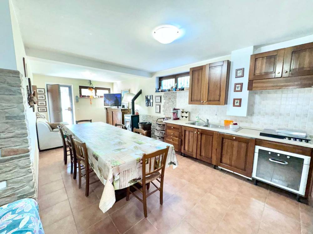Cucina abitabile con sbocco sul giardino: spazio perfetto per pranzi allaperto o barbecue in compagnia.