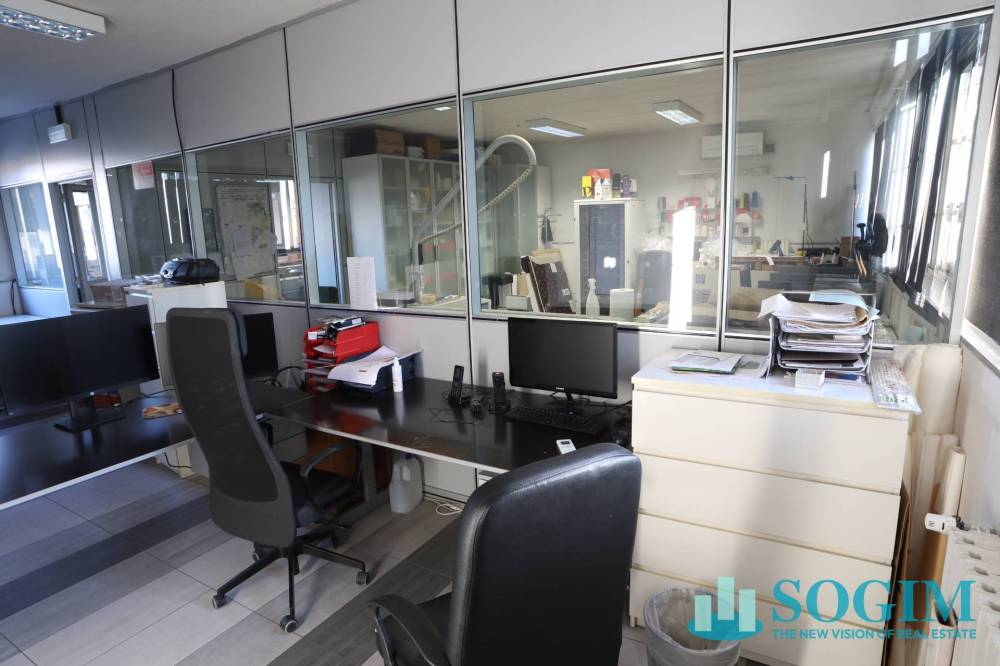 Al primo piano troviamo 300 mq. adibiti ad uffici.