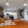 Il piano superiore ospita la zona notte, composta da tre camere matrimoniali, ciascuna con caratteristiche uniche: una con accesso al balcone, un’altra con bagno interno e una terza accogliente stanza singola. Su questo livello