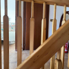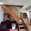 Una bella scala in legno conduce al piano primo, dove troviamo due luminose camere da letto, un secondo bagno e un grazioso balcone con affaccio sulla corte interna, da cui si gode di una spettacolare vista sulle Alpi.