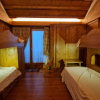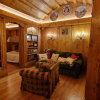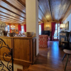 L'intero appartamento è arredato su misura in pieno stile ampezzano, con pavimenti in rovere, pareti e soffitti interamente rivestite in abete.