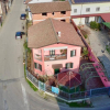 La parte esterna è composta invece da un piccolo pezzo di giardino, con un gazebo in legno in stile giapponese, e da una parte di cortile piastrellato con posto auto e ricovero attrezzi.
