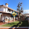 Lussuosa porzione di bifamiliare con magnifico giardino ottimamente piantumato che ne perimetra due dei tre lati. La villa è una proprietà di famiglia completamente ristrutturata dai proprietari a metà anni 80; sono stati utilizzati dei materiali solidi e delle finiture di alto livello infatti troviamo pavimenti in cotto sia nella zona giorno che nella pavimentazione esterna oltre alla presenza del sasso bianco e del mattone a vista; la zona notte è in parquet di legno, le maioliche dei bagni sono a di particolare pregio nei colori e nei disegni mentre tutti i soffitti esterni sono in legno con travatura a vista. La proprietà viene lasciata parzialmente arredata e comprensiva di cucine su misura, arredamenti bagni ed armadiature a muro permettendone lingresso e lutilizzo immediato. Gli spazi della villa si sviluppano su due piani comunicanti; al piano terra è collocata la zona giorno composta da ingresso diretto nellampissima zona living giocata su due differenti livelli ed arredata da bel caminetto con piano in marmo nero, completa il piano lampia zona pranzo separata e la piccola cucina con ripostiglio sul retro ed accesso diretto al giardino. Una scala in legno fa salire al primo piano dove sono state realizzate due camere da letto, un ampio bagno con doccia, una stanza uso stireria/cabina armadio e la camera padronale con bagno dedicato. Esternamente si sono ricavati i locali di servizio suddivisi nella ampia cantina del seminterrato e nella stanza CT in cui è stato ricavato un bagno completo con doccia. Perimetra la facciata una veranda coperta, in questa zona è stato allestito un barbecue in muratura per i momenti conviviali allaperto ed è stata costruita una ampissima tettoia di circa 50 mq per il ricovero auto. Che aspettate quindi, contattateci per una visita, per accertarvi di persona della opportunità. Inoltre il team dello Studio Immobiliare PI.GRECO è disponibile alla valutazione gratuita dei vostri immobili. Chiamateci per un sopralluogo ed una veloce e felice conclusione della trattativa. Studio Immobiliare PI.GRECO un servizio concreto.