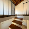 Una scala a vista in cotto ci conduce al primo piano dove troviamo una camera matrimoniale open space con tetto a vista in legno servita da balcone, accessibile anche da una scala esterna.