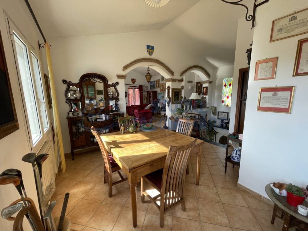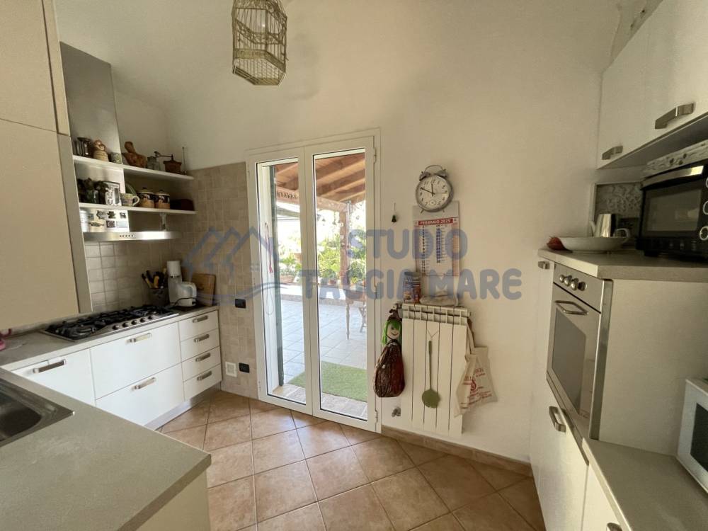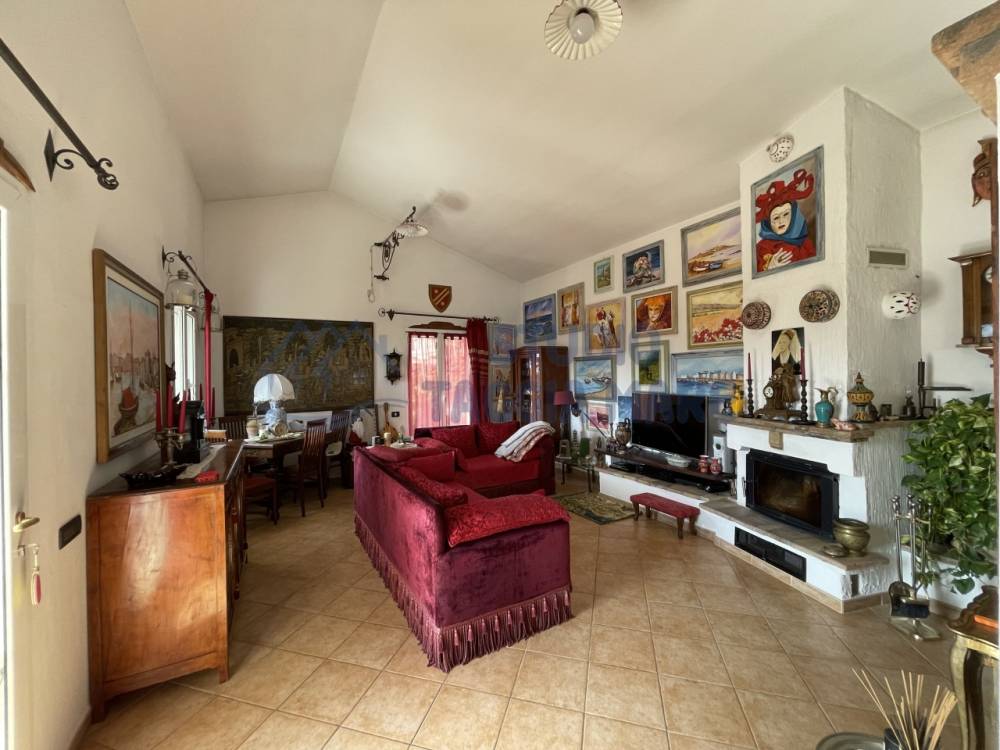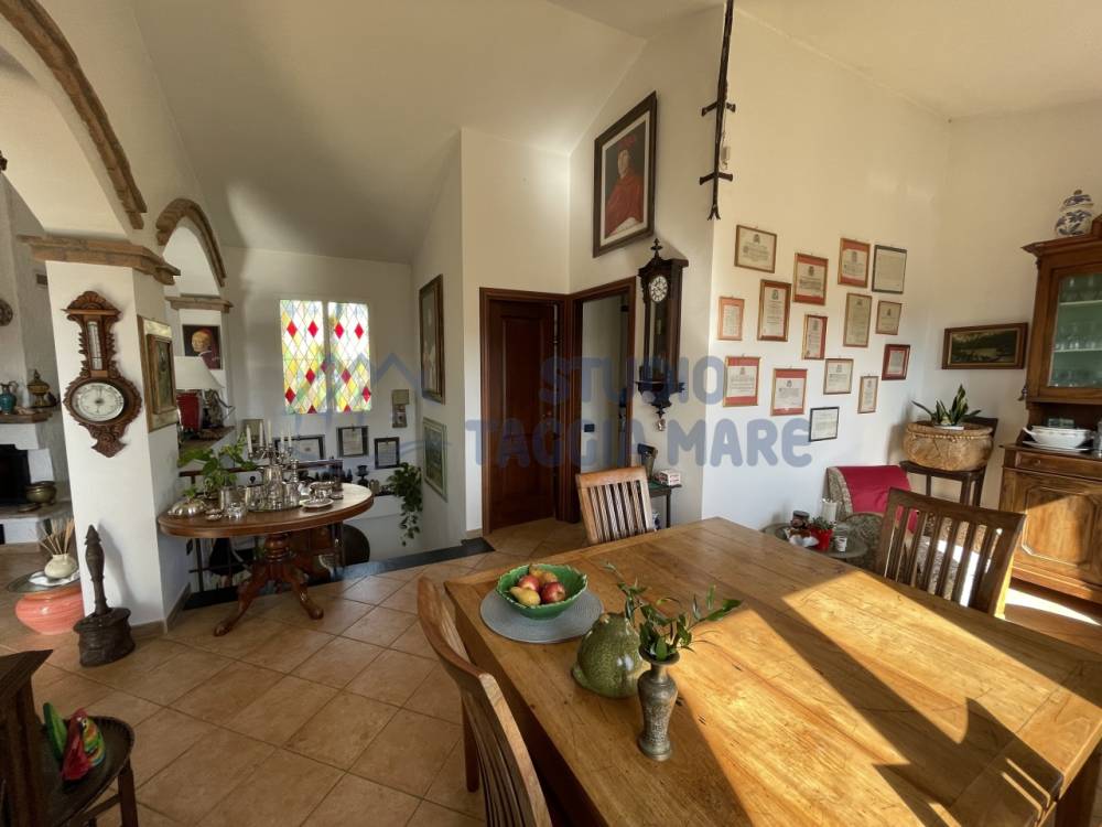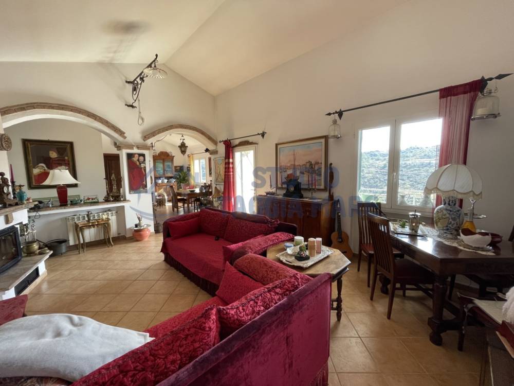 Villa indipendente di recente costruzione con ampi spazi esterni ben curati e bella vista aperta sul verde e sul mare. L'abitazione si sviluppa su due livelli cosi composti: Ingresso al primo piano dove troviamo la zona giorno suddivisa in zona relax e zona pranzo, la cucina ed il bagno di servizio. Tramite una scala interna si accede al piano terreno dove troviamo due ampie camere da letto, di cui una con cabina armadio privata, una camera più piccola, un ripostiglio ed il bagno padronale. Infissi in doppio vetro e riscaldamento in ogni ambiente. La sala gode anche di un bel camino a legna. Sia il primo piano che il piano terra hanno sfoghi sull'ampia zona esterna dove troviamo zone piastrellate e zone con prato inglese. Non mancano spazi dedicati al barbecue, al relax e alla compagnia di amici e parenti. Dentro la proprietà sono presenti spazi ampi per parcheggiare le auto e le moto e due magazzini per il ricovero attrezzi. Il giardino è ben curato e sono presenti piante di ogni specie.