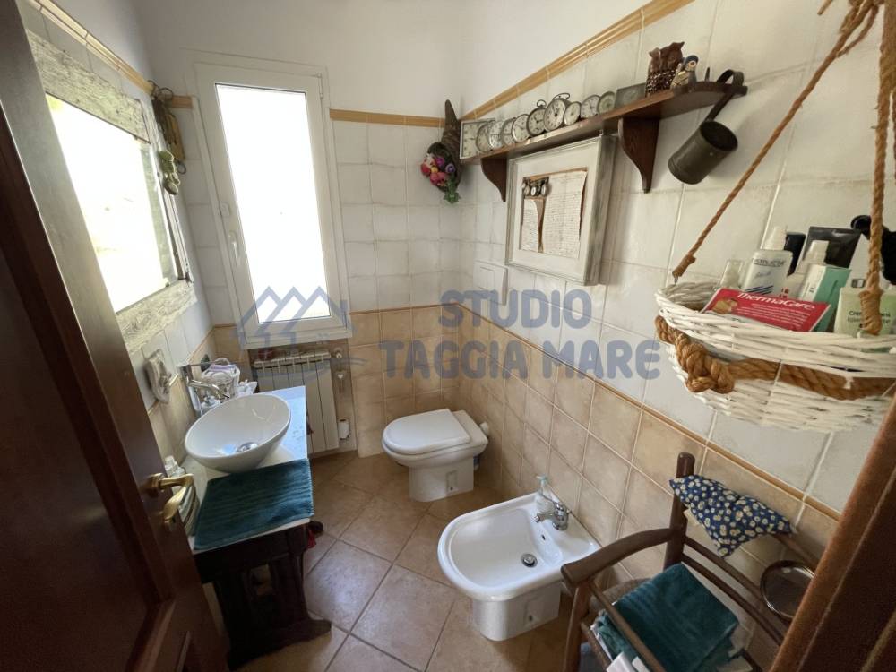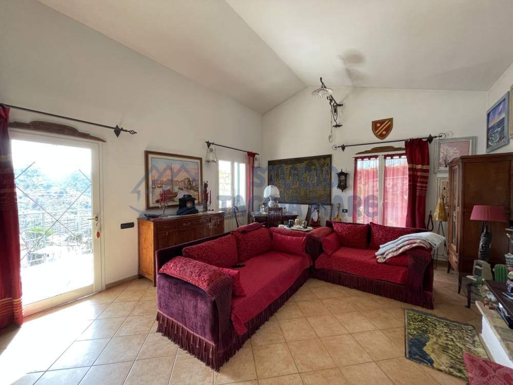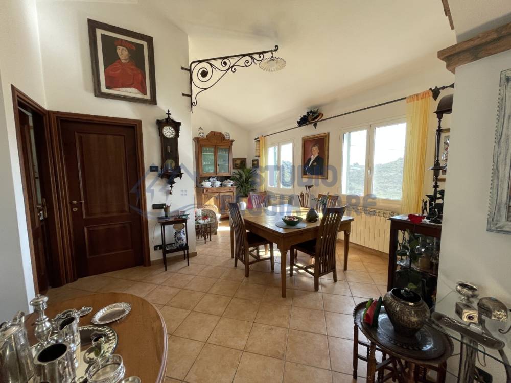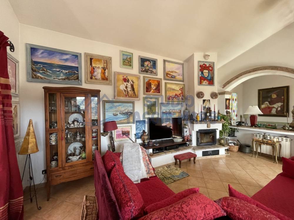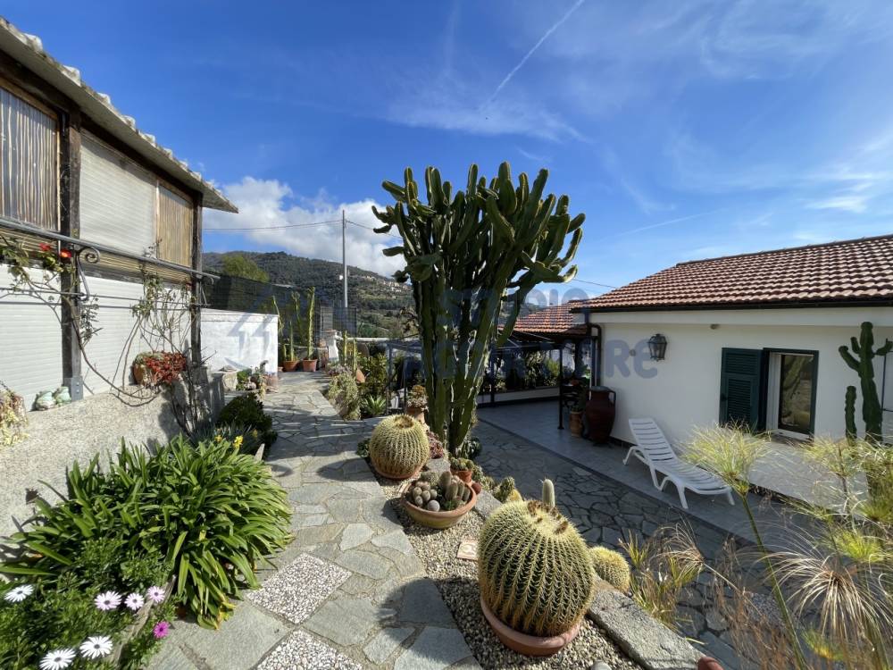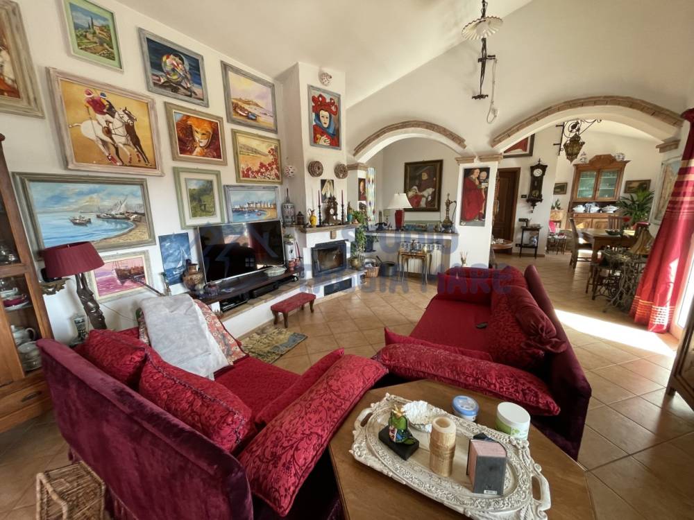 Villa indipendente di recente costruzione con ampi spazi esterni ben curati e bella vista aperta sul verde e sul mare. L'abitazione si sviluppa su due livelli cosi composti: Ingresso al primo piano dove troviamo la zona giorno suddivisa in zona relax e zona pranzo, la cucina ed il bagno di servizio. Tramite una scala interna si accede al piano terreno dove troviamo due ampie camere da letto, di cui una con cabina armadio privata, una camera più piccola, un ripostiglio ed il bagno padronale. Infissi in doppio vetro e riscaldamento in ogni ambiente. La sala gode anche di un bel camino a legna. Sia il primo piano che il piano terra hanno sfoghi sull'ampia zona esterna dove troviamo zone piastrellate e zone con prato inglese. Non mancano spazi dedicati al barbecue, al relax e alla compagnia di amici e parenti. Dentro la proprietà sono presenti spazi ampi per parcheggiare le auto e le moto e due magazzini per il ricovero attrezzi. Il giardino è ben curato e sono presenti piante di ogni specie.