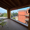 L'Immobile si trova al secondo piano, l'accesso dal vano scale si ha direttamente sul soggiorno che si affaccia su di un terrazzo coperto accessoriato con camino in muratura per barbecue. La cucina abitabile e la camera matrimoniale si affacciano su altri due balconi con una visuale sul verde e su un'altra piscina, il bagno al piano è completo di doccia e attacco lavatrice, tramite una scala in legno si accede al piano superiore dove troviamo una seconda camera da letto finestrata ed un ulteriore bagno completo con vasca.