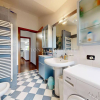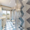 Bagno con porta finestra che dà accesso a un balconcino, migliorando la ventilazione e l'illuminazione naturale.