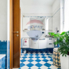 L'appartamento è composto da tre locali, di cui due camere da letto, due bagni e una cucina separata.