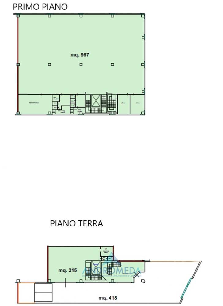 Piano terra di circa m² 200 con un’altezza di mt 4,60; Primo piano di circa m² 1.000 con un’altezza sotto trave di mt 3,56, un’altezza minima sotto colmo di mt 4,70 e un’altezza massima sotto colmo di mt 5,24.A completare la proprietà, un’ampia area esterna di circa m² 420, ideale per manovre, carico/scarico e parcheggio mezzi, oltre a 10 posti auto riservati.