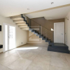 A piano terra c'è la zona giorno e un locale lavanderia/bagno, la scala con finitura in resina porta alla zona notte composta da un disimpegno, 3 camere un bagno e 2 balconi.
