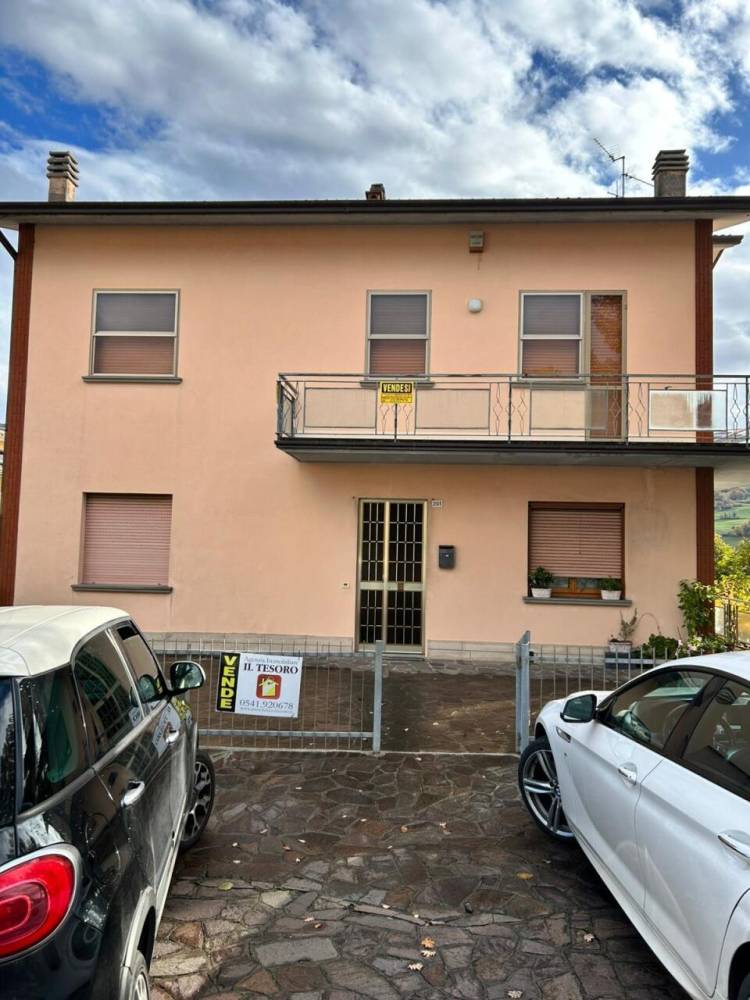 NOVAFELTRIA. Vendesi, in zona centrale, porzione di casa bifamiliare, al piano terra, già abitabile, con possibilità di arredamento, con ingresso indipendente. Composta da: soggiorno, cucinotto, tre camere, bagno, balcone, corte esclusiva, due posti auto riservati e al piano seminterrato un ampio garage doppio con tavernetta, centrale termica e terreno per orto.