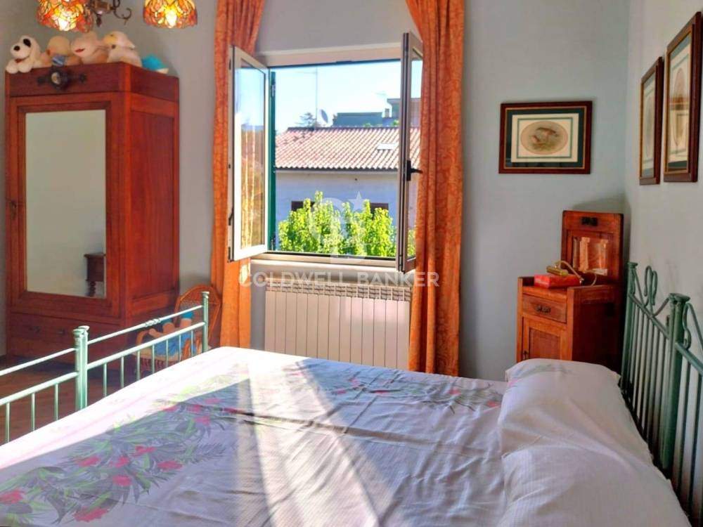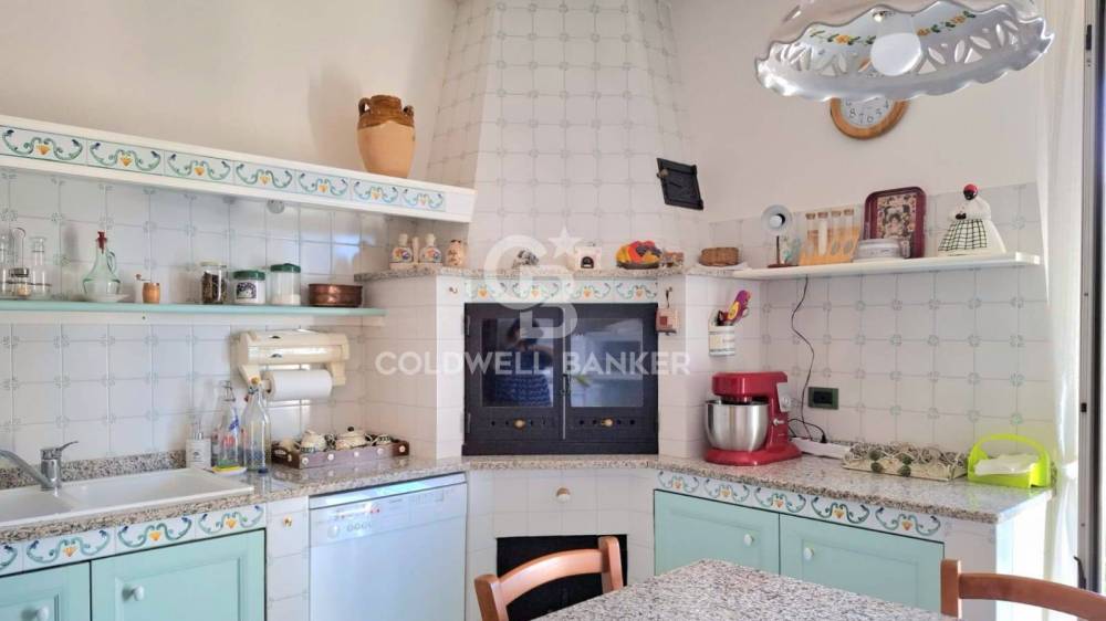 Il piano terra è suddiviso in salone con camino, disimpegno con armadiature a muro, cucina, due camere matrimoniali, due bagni, uno studiolo.