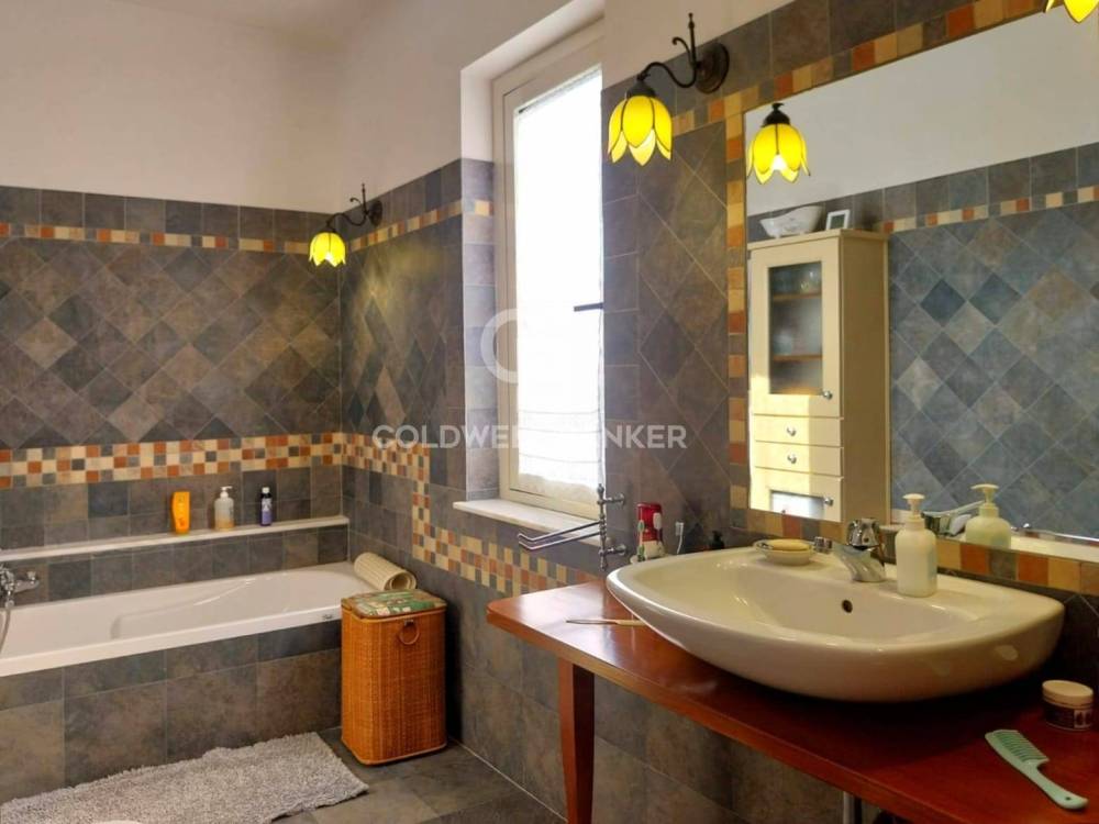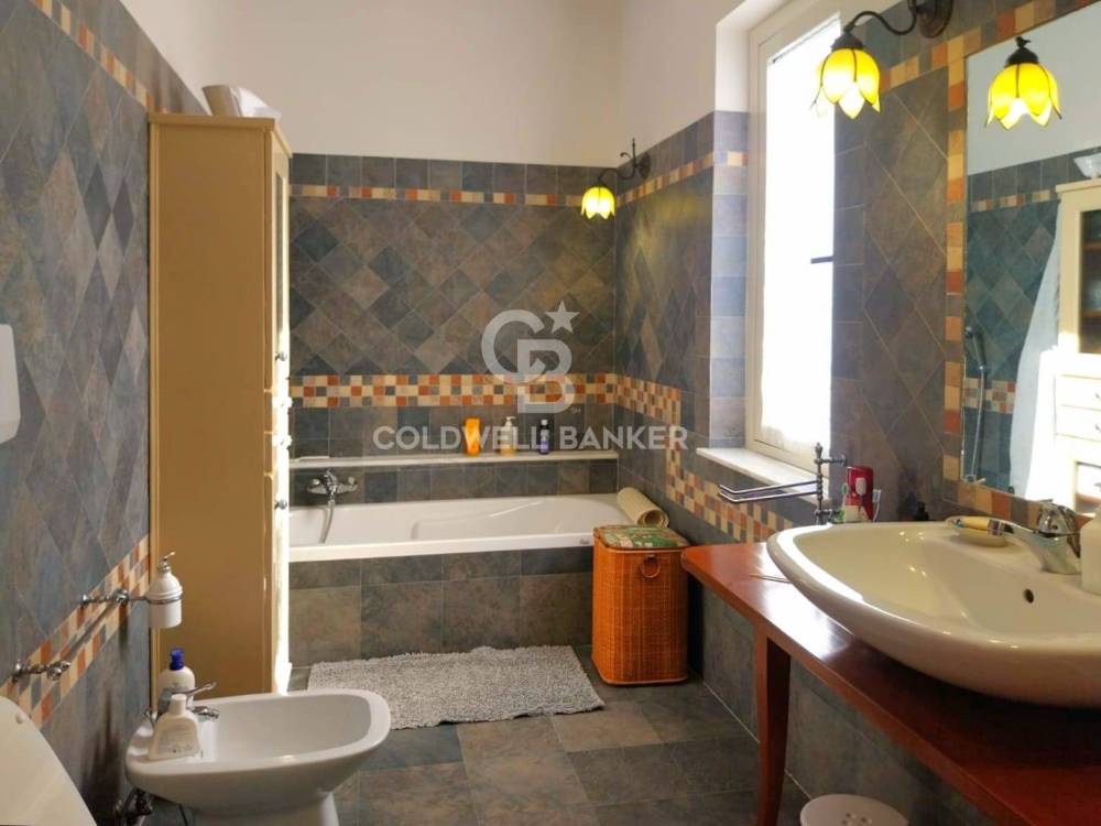 Il primo piano, dotato di accesso indipendente, è perfettamente ristrutturato con materiali di alto livello e si compone di salone con camino e balcone, cucina in muratura con camino e balcone, disimpegno con armadiature a muro e stufa, due grandi camere matrimoniali e due bagni.