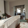 Luminosissima e ampia casa indipendente, con accesso da balconcino al piano rialzato su due livelli. Grande piano terra dove troviamo: lavanderia, bagno con doccia e locali pluriuso con accesso al giardino. La porta d'ingresso in salone da cui si intravede una moderna porta scorrevole e la cucina, portafinestra e balcone.