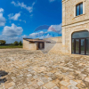Gli edifici rurali della Puglia sorprendono sempre per le peculiari caratteristiche architettoniche e soprattutto per lesposizione e la posizione che non è mai casuale. Qui siamo nel territorio del Comune di Rutigliano, in posizione rilevata a circa 180 metri sul livello del mare, lungo la Strada Comunale Annunziata che incrocia la provinciale Casamassima Conversano a soli 6 chilometri dallabitato, a 600 metri dallomonima Lama ed a circa 1.800 passi dalla settecentesca Chiesetta rurale Santa Maria dell Annunziata. Di qui lo sguardo spazia dai borghi di Casamassima, Rutigliano e Conversano fino al mare della costa Adriatica con il caratteristico mosaico agricolo dovuto alle diverse specie vegetali che popolano la campagna e lenorme polmone verde del bosco di Lama San Giorgio. Tutta la proprietà è circondata da un alto muro a secco in pietra con due portali ed un lastricato sempre in pietra che converge verso lingresso padronale dellantico edificio, oltre ad unarea di parcheggio antistante e ad un terreno seminativo di circa 3 ettari da valorizzare con alte alberature. La facciata è imponente tutta di pietra bianca locale e la tecnica costruttiva della masseria è quella tipica del periodo compreso tra la fine del settecento e lottocento, con le fondazioni scavate nella roccia viva, come è possibile apprezzare da una visita al piano interrato e gli angolari della fabbrica così come gli stipiti delle aperture sono realizzati con blocchi di pietra accuratamente selezionati, squadrati e sovrapposti con estrema cura, mentre il paramento murario è in pietra calcarea sbozzata con un accuratissima tessitura delle volte che incanta lo sguardo. La pianta è quadrata, regolare e scandita da un accesso centrale con due grandi ambienti laterali: a sinistra un grande vano voltato in cui riconosciamo la presenza di mangiatoie collegato da aperture ad una corte pavimentata con una grande tettoia in legno e coppi di argilla. In fondo un disimpegno con grandi ambienti di servizio che fanno immaginare una vocazione ristorativa. A destra un altro grande salone voltato ed un grande ambiente di servizio oltre ai bagni e ad indispensabili vani deposito. Dalla scala centrale luminosissima si sale al piano nobile con disimpegno, servizi cinque grandi vani voltati ed una meravigliosa terrazzo da cui godersi i confini della proprietà e la campagna circostante. Il lucernaio con cristalli illumina la parte finale della scala che conduce al secondo piano, certamente il più panoramico e caratteristico con due grandi ambienti, ben 5 aperture ed un caratteristico tetto con capriate in legno ed un terrazzo sul prospetto principale della Masseria. Infine la caratteristica cantina scavata nella roccia rappresenta nel modo migliore lorigine di questi edifici che sono di fatto dei veri e propri monumenti in grado di celebrare la straordinaria abilità degli artigiani locali. Tutto ledificio è stato oggetto di una sapiente opera di restauro che ne ha valorizzato lo splendore architettonico, attraverso un opportuno trattamento della pietra, linstallazione di tutti gli impianti tecnologici necessari al vivere contemporaneo e le preziose pavimentazioni in graniglia e mosaico di cementine del piano terra. Come abbiamo anticipato in premessa la masseria è situata in un'area prossima al centro urbano di Casamassima, oggi interessato da un grande sviluppo legato alla presenza di centri commerciali e di un prestigioso Campus Universitario multidisciplinare ed è immersa in una campagna curata e ben coltivata con distese di ciliegeti che in primavera regalano una inebriante fioritura che non ha nulla da invidiare alla più famosa Sakura del Giappone, e poi il grande bosco di macchia mediterranea che delinea il primo tratto della nota Lama San Giorgio con tanti percorsi per gli appassionati di cicloturismo. Solo una visita guidata potrà restituire in modo adeguato il fascino di tanta bellezza e la qualità delle opere di restauro già effettuate